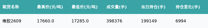 南财智讯4月29日电,盘后期货数据显示,上海期货交易所的橡胶主力合约收涨1.91%,收盘报17635.0元/吨,日内资金流入3.73亿元。其他相关指标见下表: