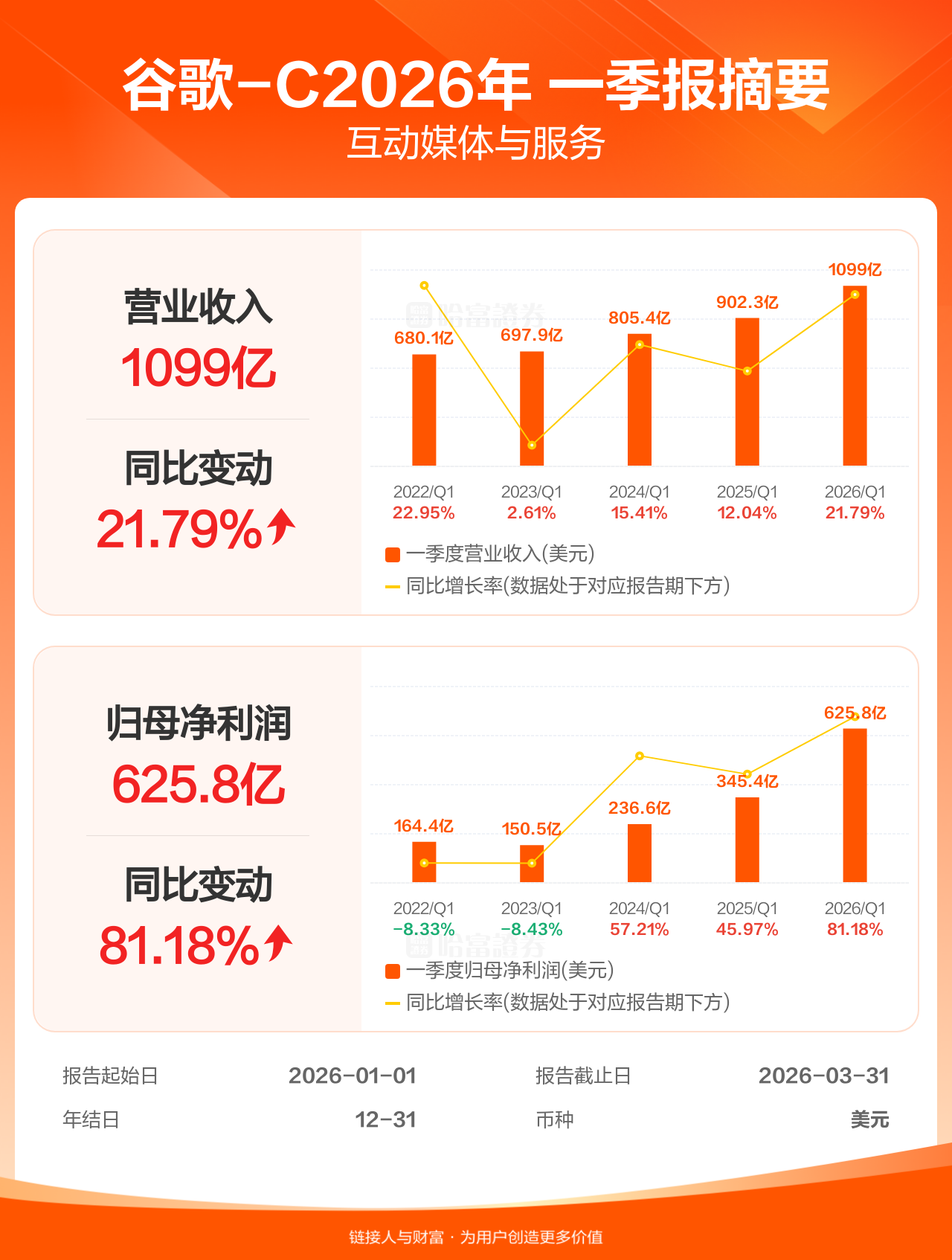 【图解财报】谷歌-C一季报盈利625.78亿美元,同比增加81.18%