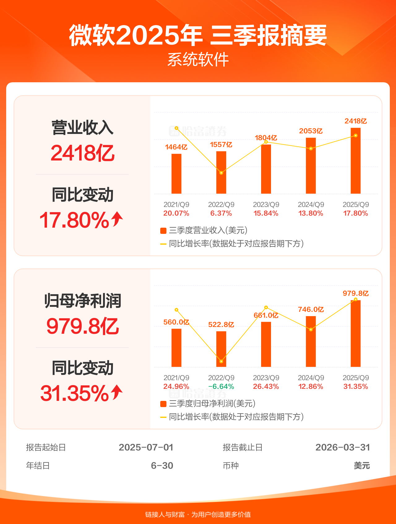 【图解财报】微软三季报盈利979.83亿美元,同比增加31.35%