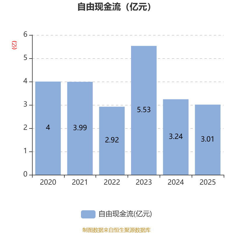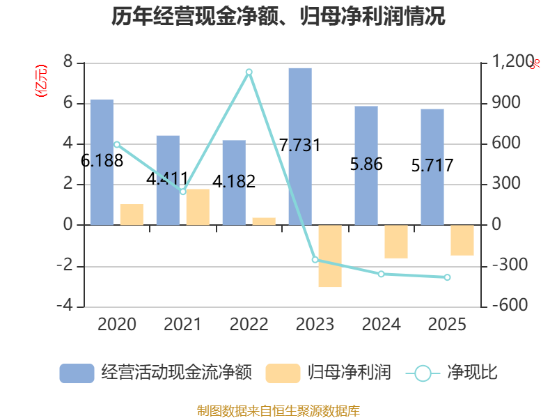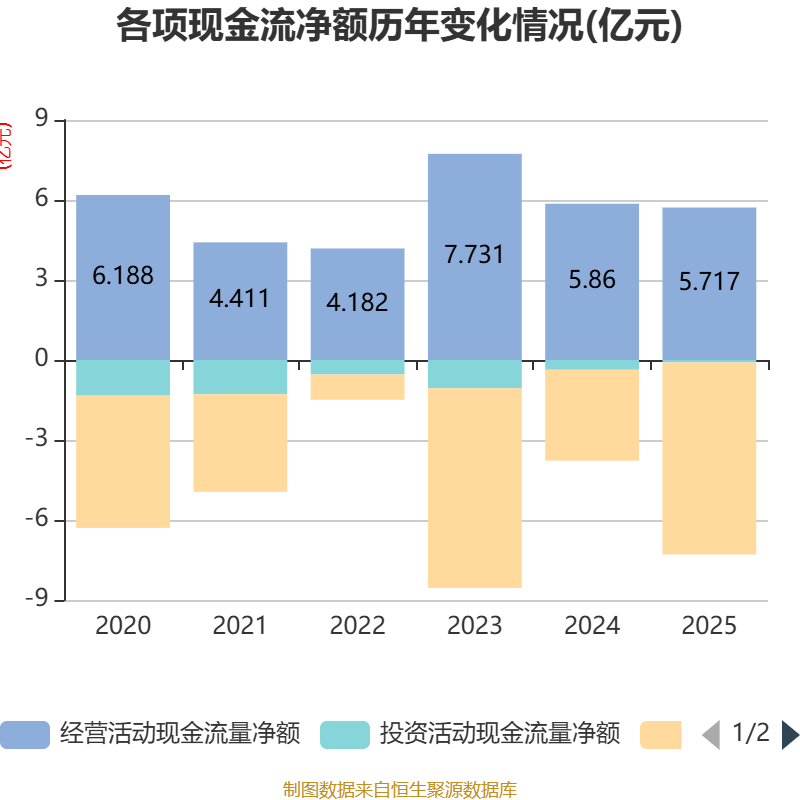 截至2025年,公司经营活动现金流净额为5.72亿元,同比下降2.44%;筹资活动现金流净额-7.2亿元,同比减少3.79亿元;投资活动现金流净额-915.6万元,上年同期为-3662.04万元。