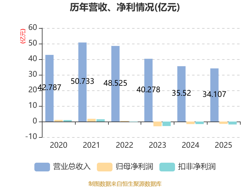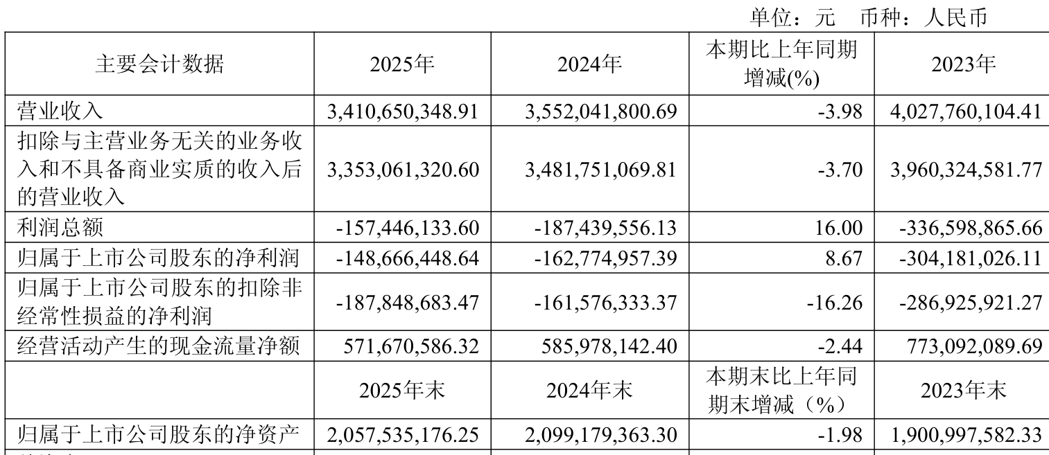 中证智能财讯曲美家居(603818)4月30日披露2025年年度报告。2025年,公司实现营业总收入34.11亿元,同比下降3.98%;归母净利润亏损1.49亿元,上年同期亏损1.63亿元;扣非净利润亏损1.88亿元,上年同期亏损1.62亿元;经营活动产生的现金流量净额为5.72亿元,同比下降2.44%;报告期内,曲美家居基本每股收益为-0.22元,加权平均净资产收益率为-7.15%。