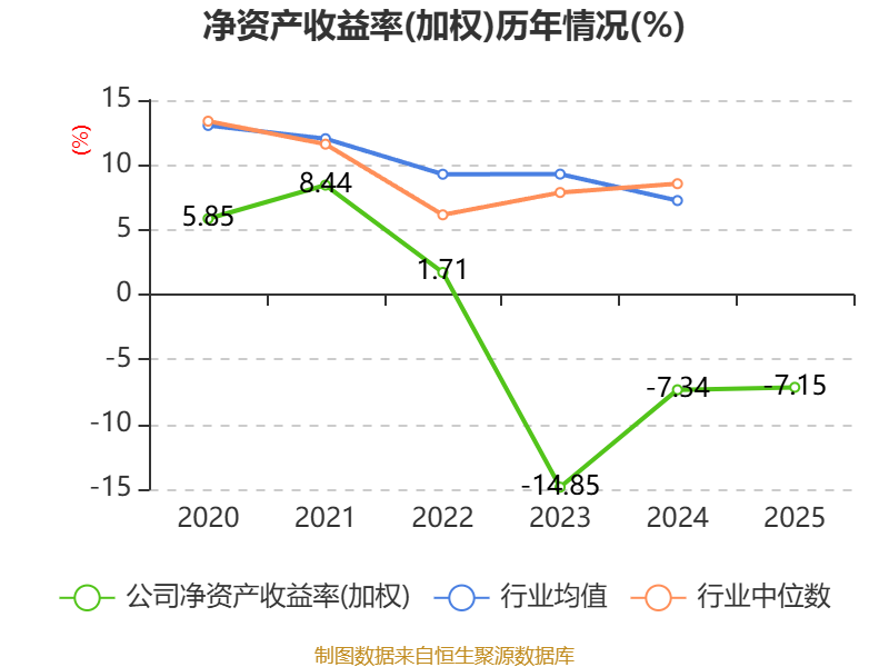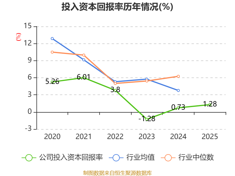 数据显示,2025年公司加权平均净资产收益率为-7.15%,较上年同期上升0.19个百分点。公司2025年投入资本回报率为1.28%,较上年同期上升0.55个百分点。