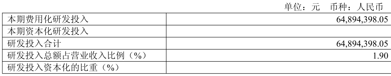 2025年全年,公司研发投入金额为6489.44万元,同比下降13.48%;研发投入占营业收入比例为1.9%,相比上年同期下降0.21个百分点。