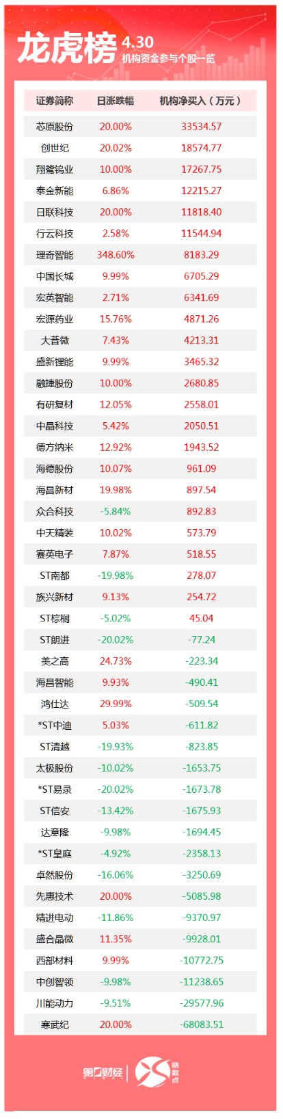 龙虎榜丨机构今日买入这24股,卖出寒武纪6.8亿元
