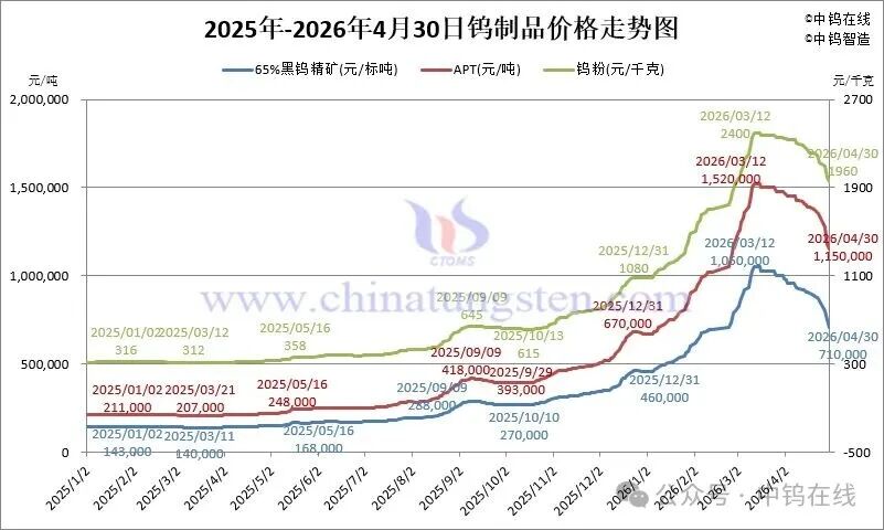全球钨市场从去年起迎来一轮强势上涨行情,据中钨在线统计数据,自2025年3月低点至2026年3月高点,钨制品价格在一年内累计涨幅接近650%,钨废料价格涨幅也超过500%。其中,仅2026年1月至3月中旬,钨价累计涨幅近130%。