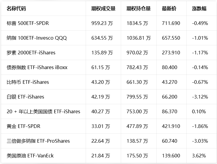 期权成交量排行榜