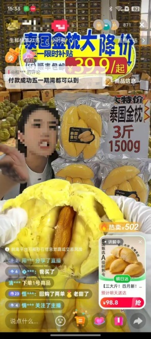 在直播间里,榴莲的价格“很香”。