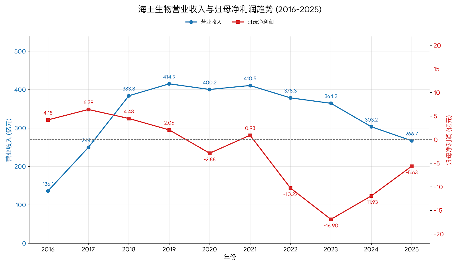 事实上,海王生物业绩下行已持续多年,具体情况如下图所示。