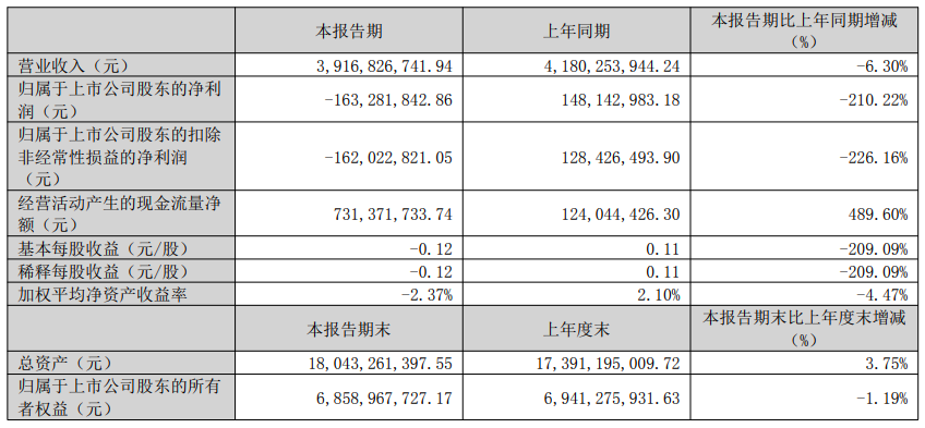 4月30日,天康生物(002100)发布2026年第一季度报告,报告期内公司营业收入39.17亿元,同比下降6.30%;归母净利润-1.63亿元,同比骤降210.22%,而去年同期盈利1.48亿元;扣非归母净利润-1.62亿元,也由盈转亏,同比下降226.16%。同时,加权平均净资产收益率由正转负,从去年同期的2.10%骤降至-2.37%。