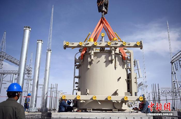 4月29日,祁曼750千伏变电站在安装设备。马元摄