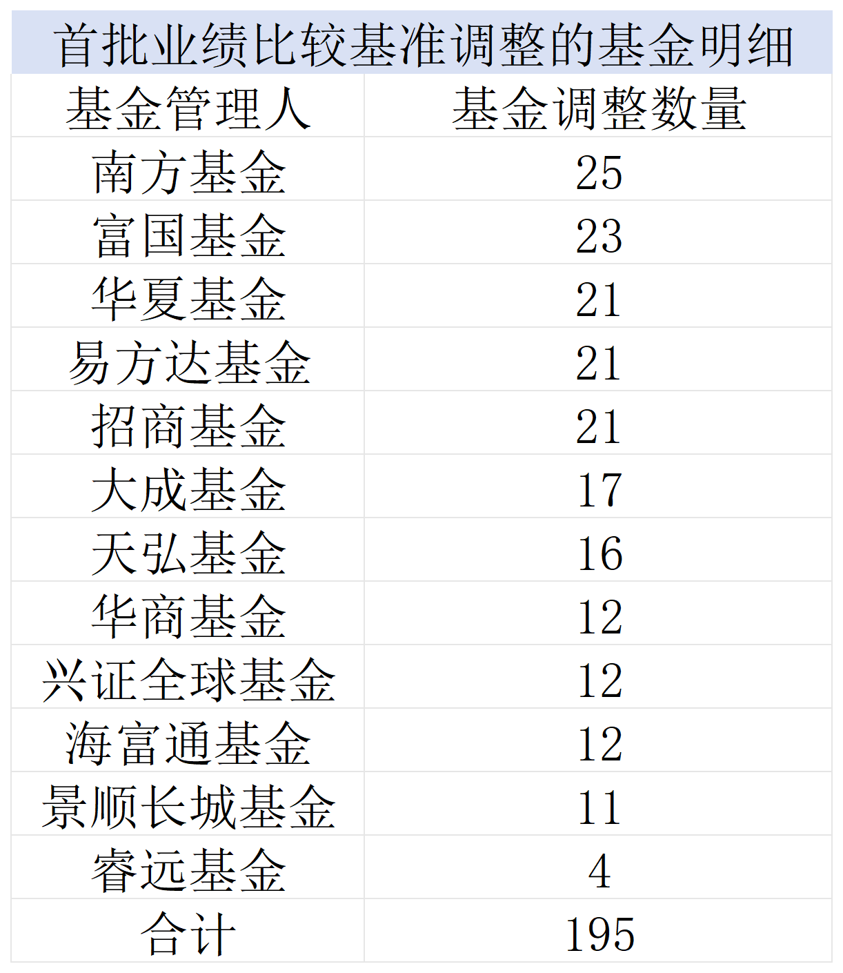 表:首批业绩比较基准调整的基金明细来源:公告界面新闻整理
