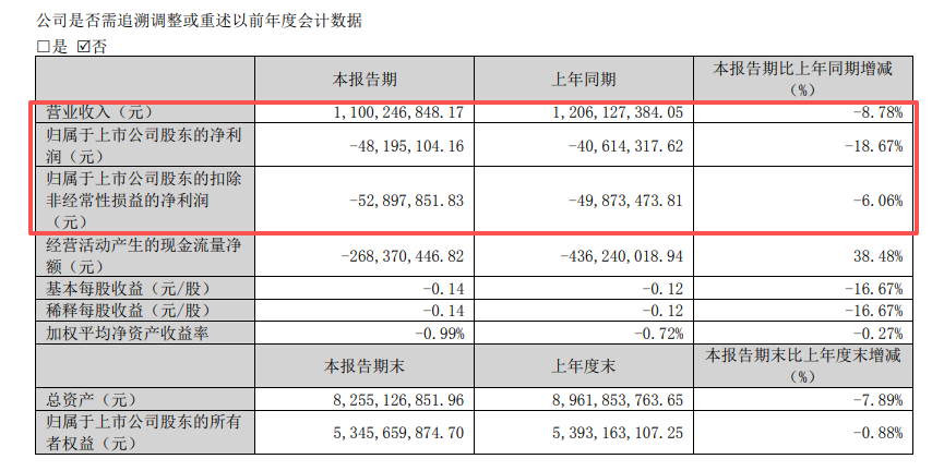 4月29日晚间,坚朗五金一季报出炉,营收、净利润继续“双降”——今年一季度,公司实现营收11亿元,同比下滑8.78%;净利润亏损4819.51万元,同比下滑18.76%。