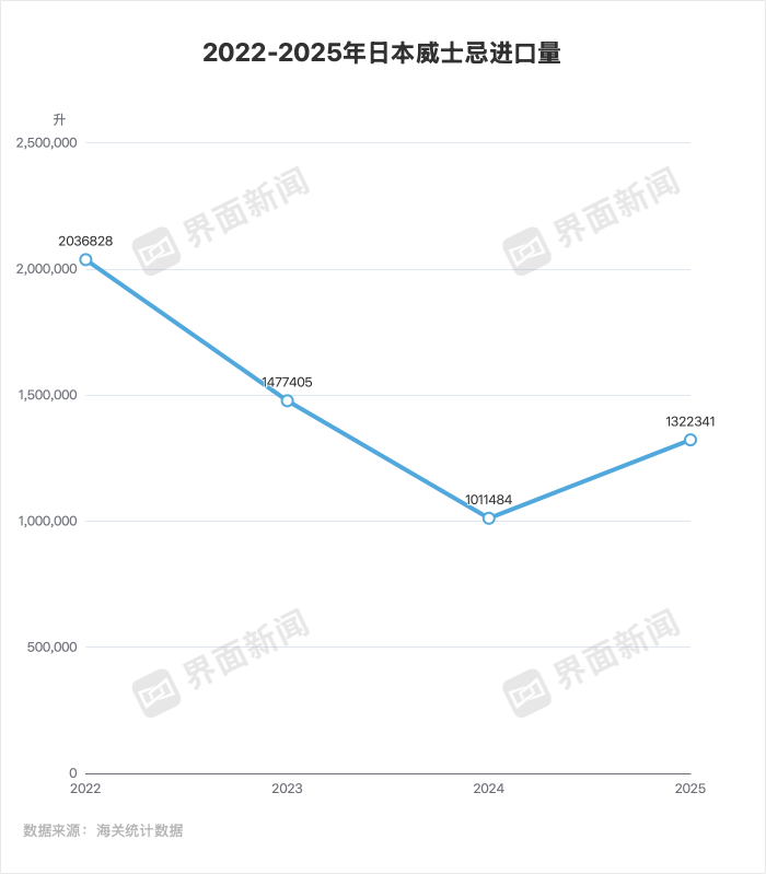 日本威士忌进口量下行/制图:界面新闻武冰聪
