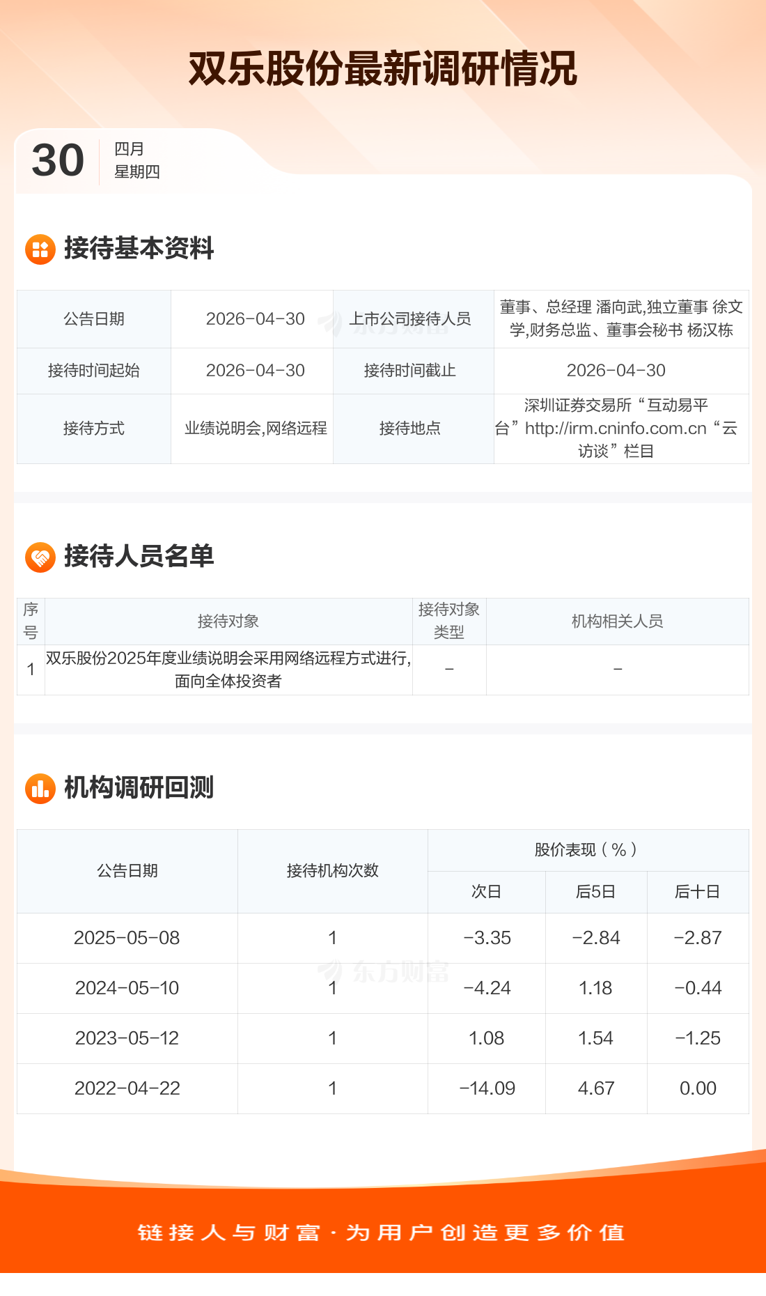 【调研快报】双乐股份接待双乐股份2025年度业绩说明会采用网络远程方式进行,面向全体投资者调研