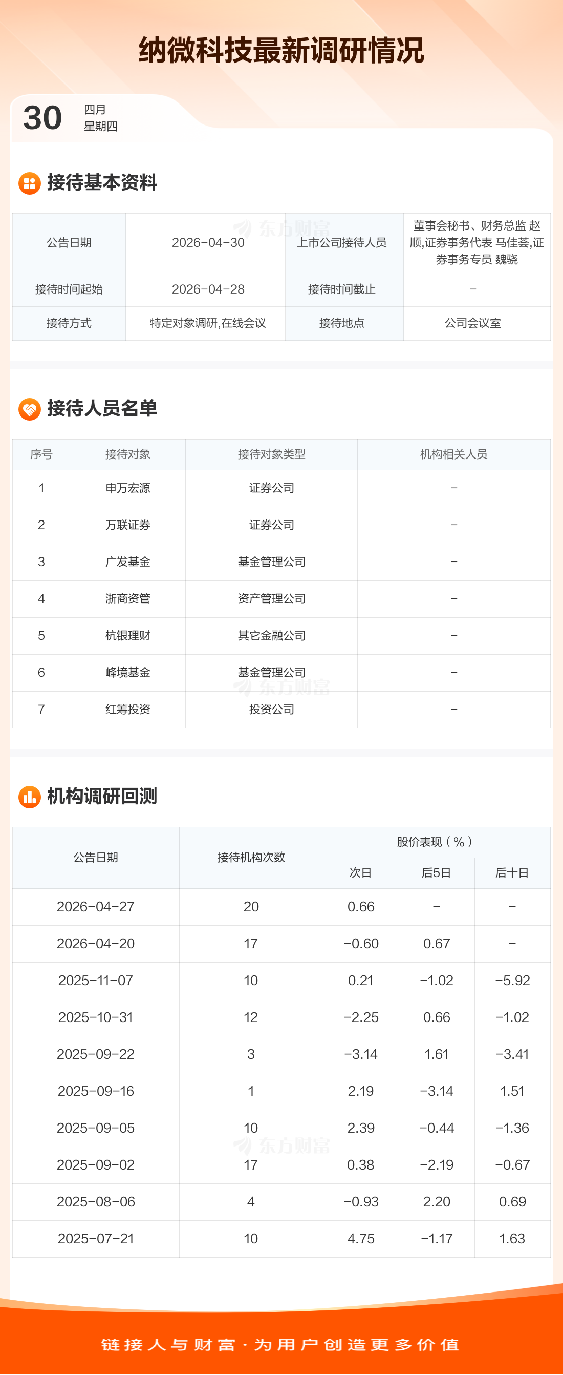 【调研快报】纳微科技接待申万宏源等7家机构调研