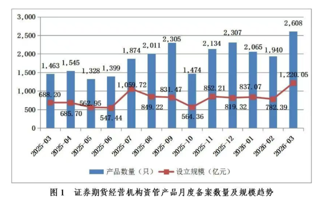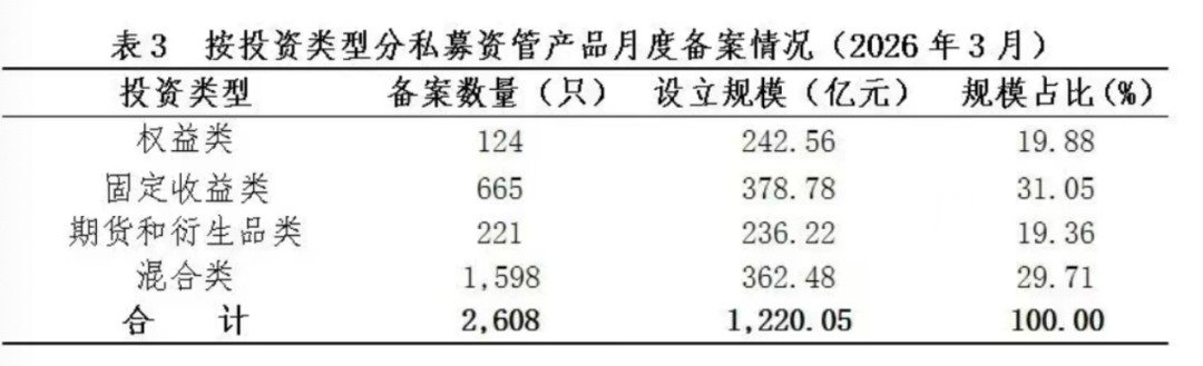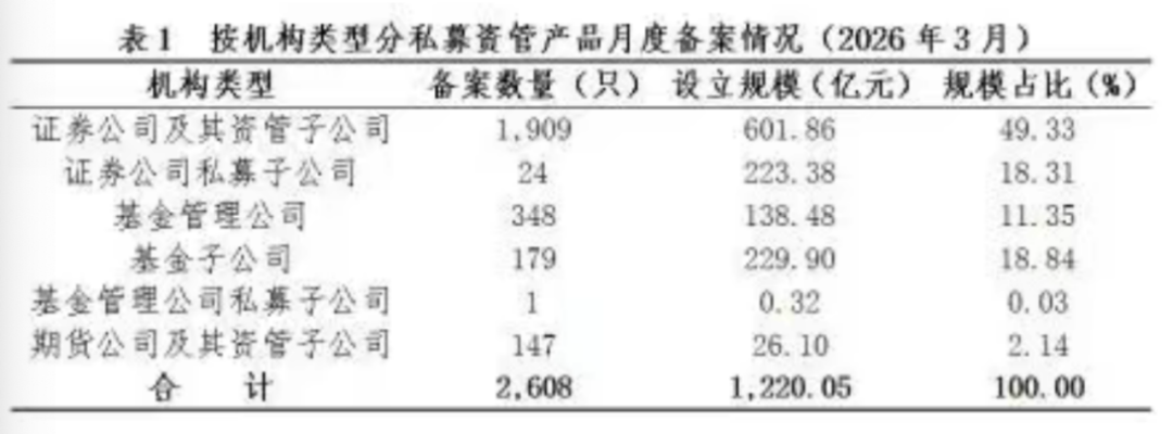 4月30日,中国证券投资基金业协会发布2026年3月证券期货经营机构私募资管产品备案月报。