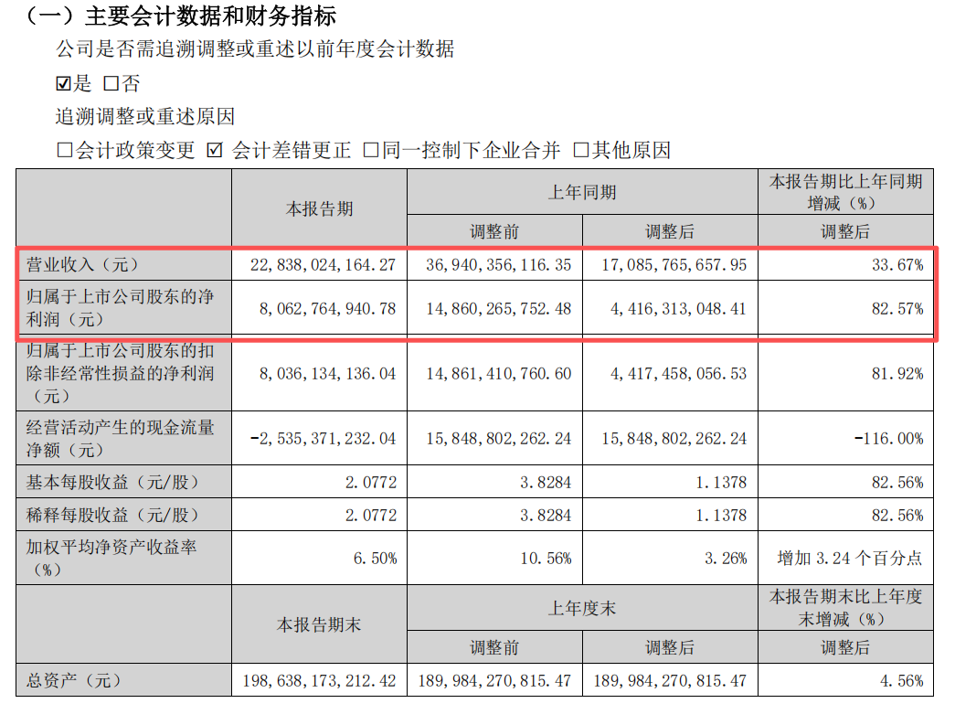 2026年第一季度,五粮液报告期内实现营业收入228.38亿元,同比增长33.67%;归属于上市公司股东的净利润为80.63亿元,同比增长82.57%。公司表示,业绩变动主要系上年同期基数较低,同比有所增长。