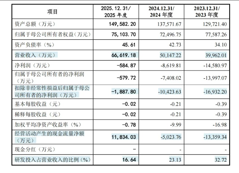 据招股书,近三年来,国仪量子营收分别为4.00亿元、5.01亿元、6.66亿元;亏损幅度逐年收窄,扣除非经常性损益后归母净利润分别为-1.69亿元、-1.04亿元和-1887.80万元。截至2025年底,公司合并报表未分配利润为-3.6亿元,依然存在未弥补亏损。
