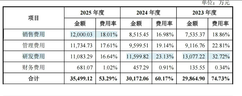 值得一提的是,虽然公司多次在招股书中强调近年来持续加大研发投入,但或是受亏损压力影响,其研发费用率期内出现骤降,从2022年的75.34%下滑至2024年的23.13%,2025年更是滑落至16.64%。