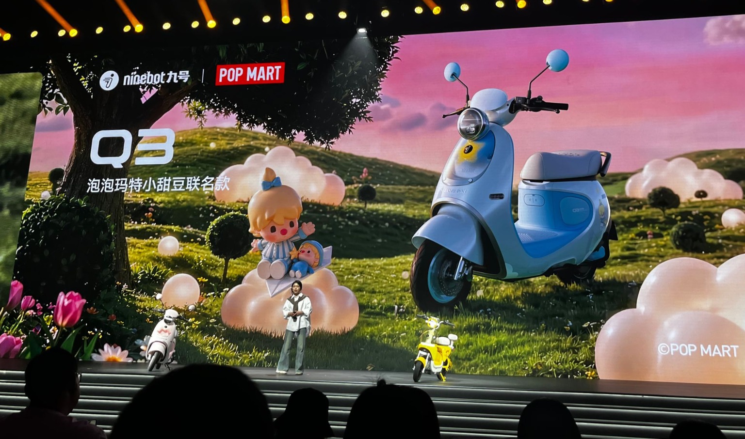 当泡泡玛特“小甜豆”联名款智能电动车Qz1驶上舞台时,观众纷纷举起手机拍摄记录;品牌代言人易烊千玺从幕后走出时,粉丝相机的快门声此起彼伏。网红IP(具有商业价值的创意内容或品牌)联名车亮相、顶流明星代言人到场,九号公司用一种近乎“潮玩发布会”的方式,推出了自己的最新产品。