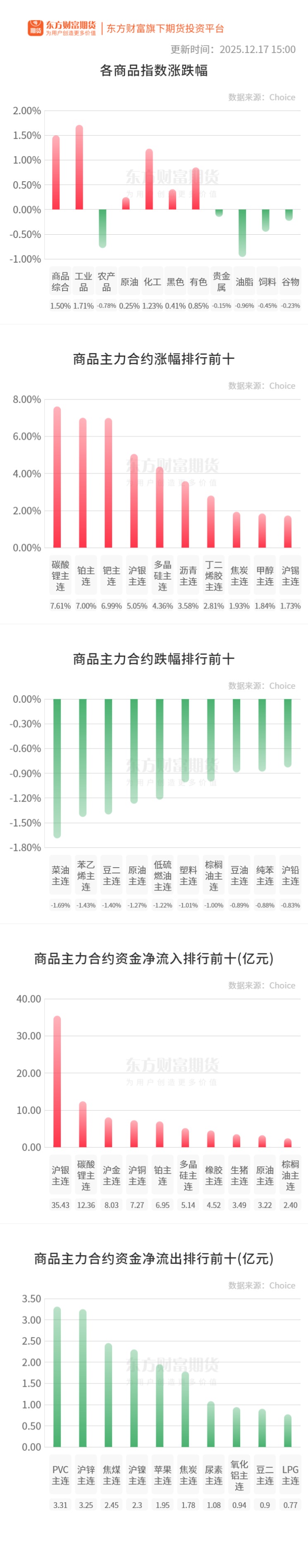 碳酸锂:据我的钢铁网(Mysteel)数据显示,12月17日MMLC电池级碳酸锂(早盘)价格较前一日上涨3500元/吨,中间价报101300元/吨。(Mysteel)