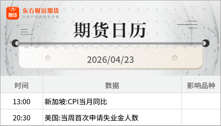 甲醇:截至2026年4月22日,中国甲醇港口库存总量在97.57万吨,较上一期数据增加1.56万吨。其中,华东地区累库,库存增加4.73万吨;华南地区去库,库存减少3.17万吨。(隆众资讯)
