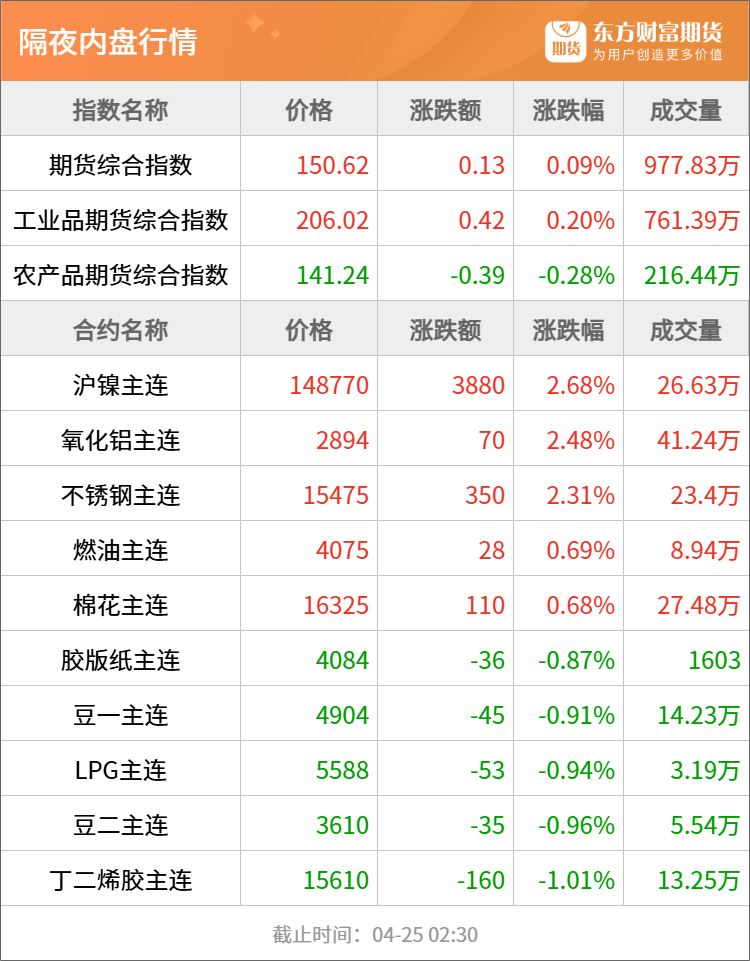 隔夜行情