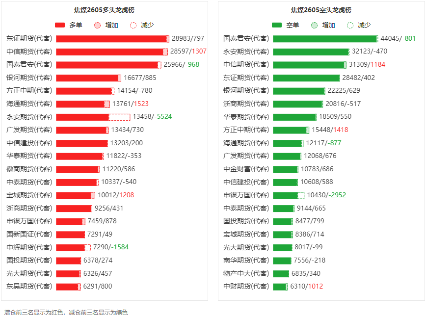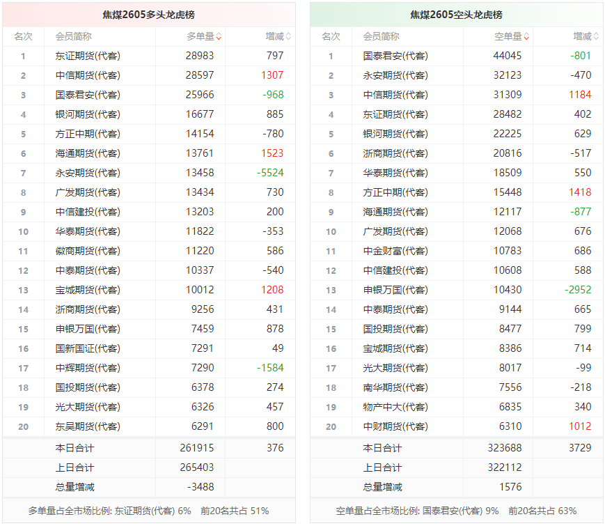 焦煤龙虎榜 | 主力合约今日增仓下行 多方呈退场态势 空方呈进场态势
