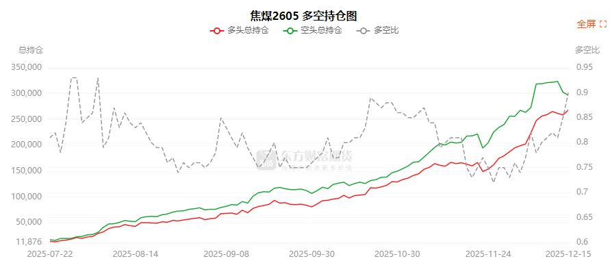 总体而言,焦煤2605合约今日减仓上行,多空持仓排名前20席中,多方呈进场态势,空方呈退场态势。