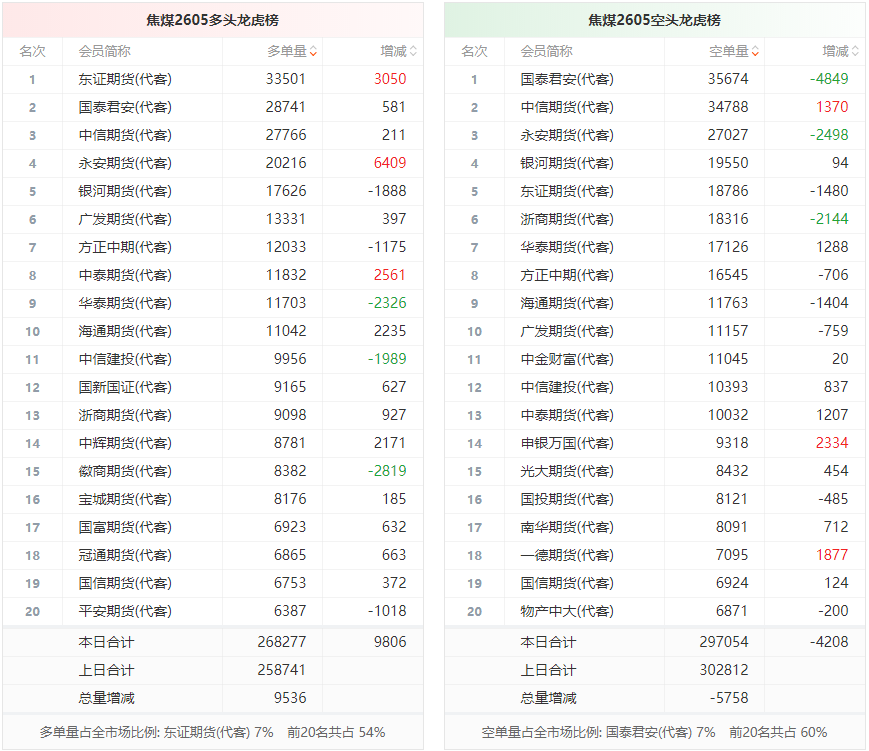 焦煤龙虎榜 | 主力合约减仓上行 空方呈退场态势