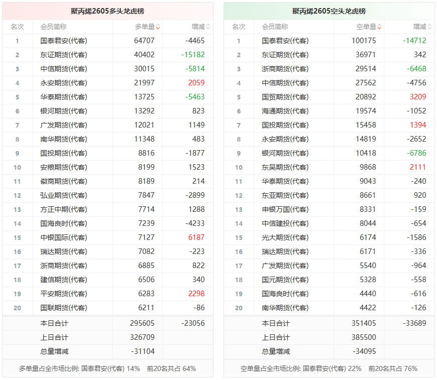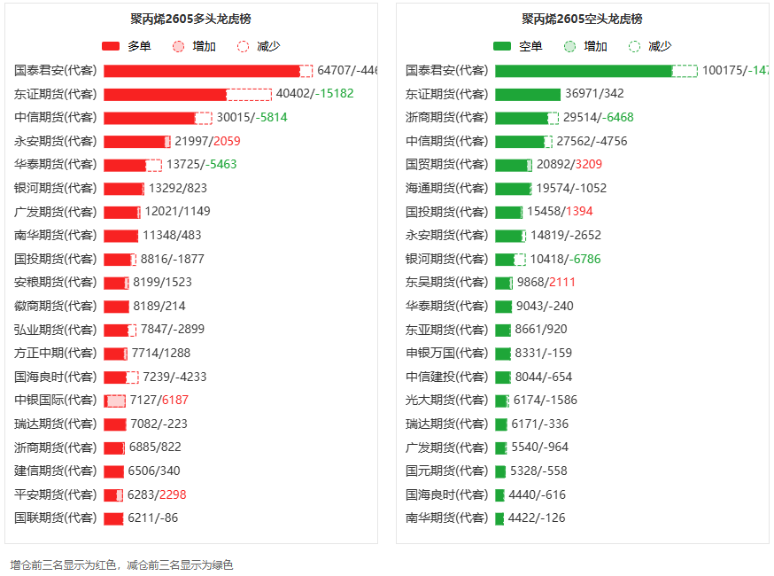 聚丙烯龙虎榜 | 主力合约今日减仓上行 多空双方均呈退场态势