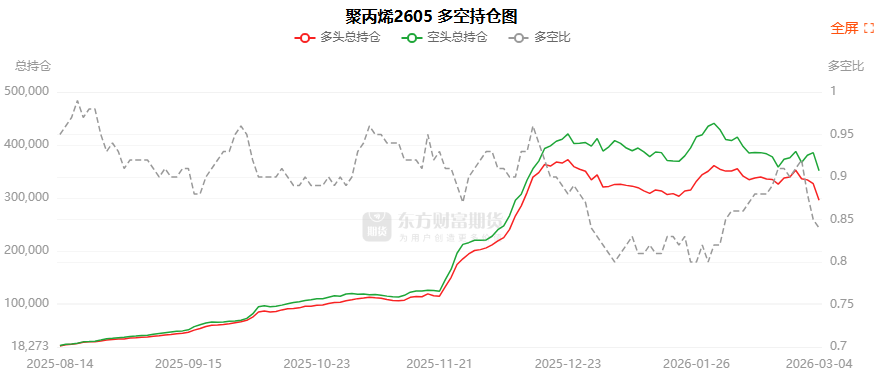 总体而言,聚丙烯2605合约今日减仓上行,多空持仓排名前20席中,多空双方均呈退场态势,多头退场意愿弱于空头。