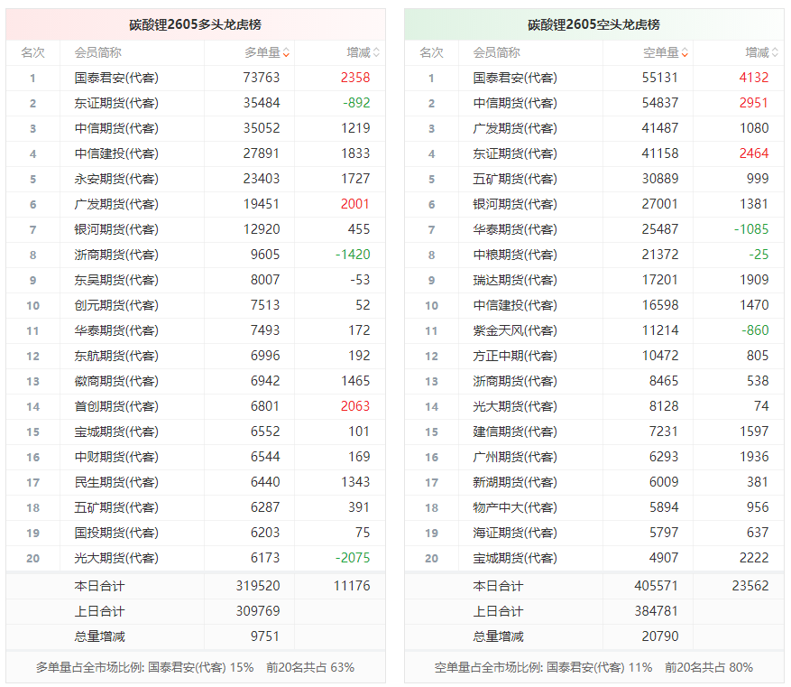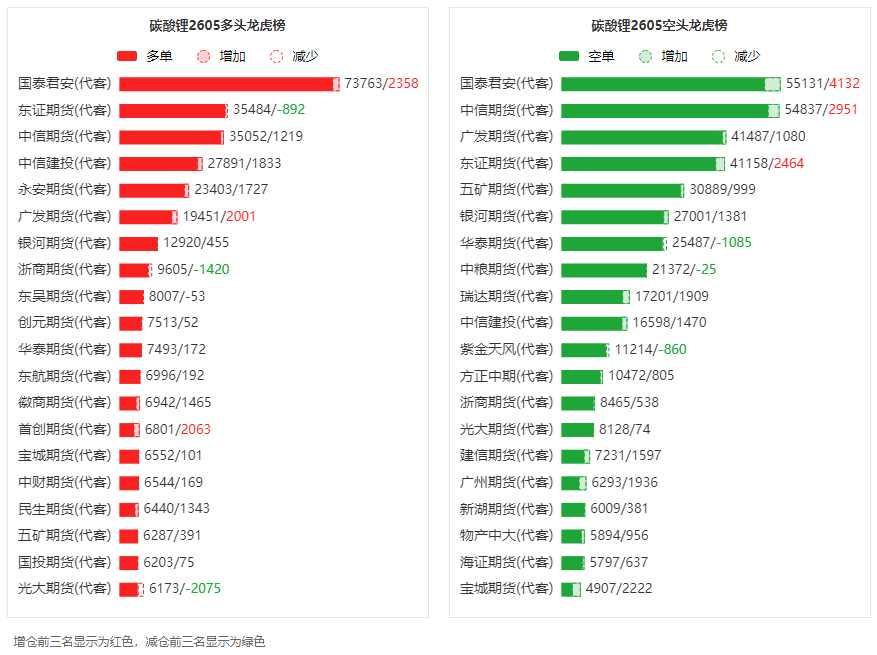 碳酸锂龙虎榜 | 主力合约增仓下行 多空双方均呈进场态势