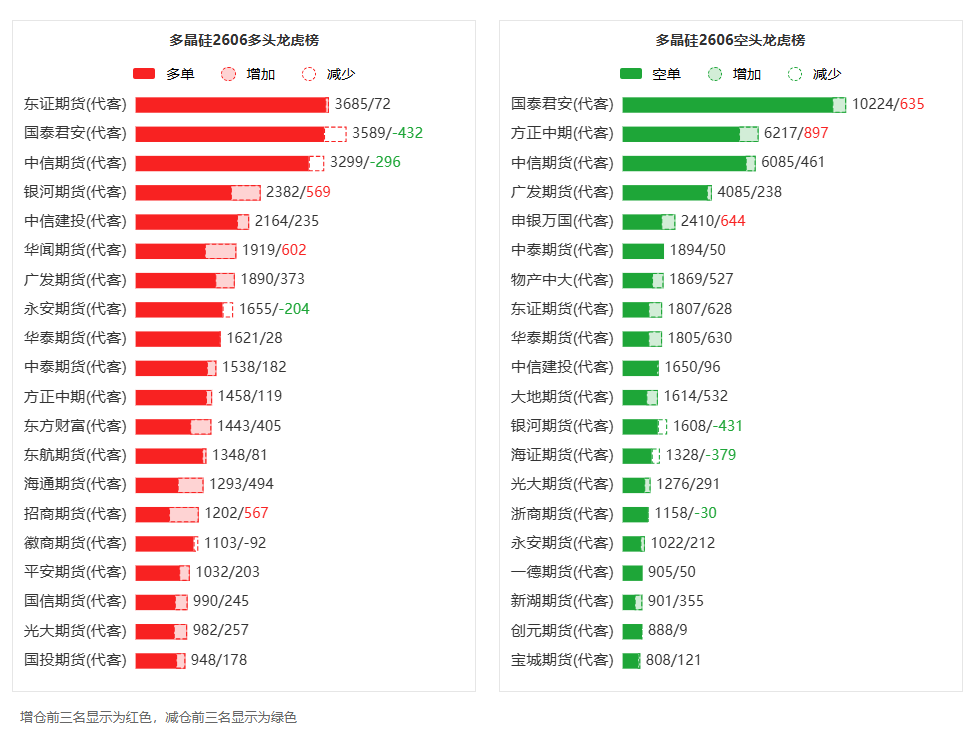 多晶硅龙虎榜 | 主力合约增仓下行 多头进场意愿弱于空头