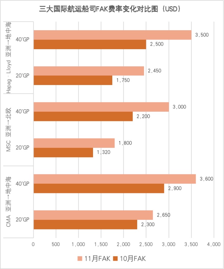 10月VS11月三大船司FAK费率对比图制图:陈怡轩