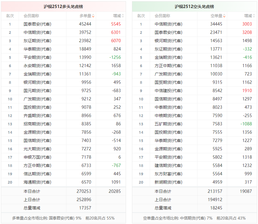 沪银龙虎榜 | 主力合约今日增仓上行 多空双方均呈进场态势