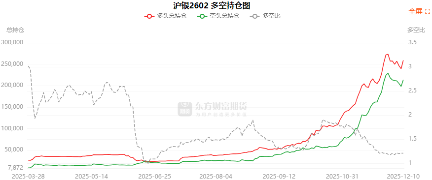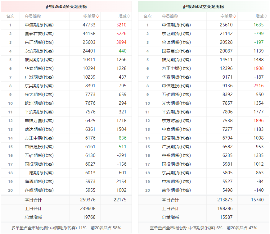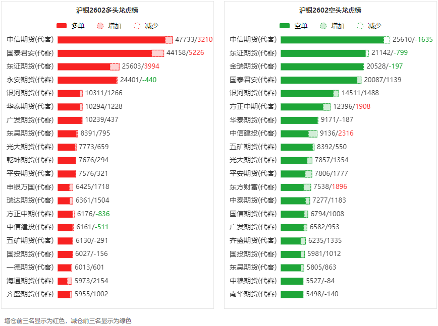 总体而言,沪银2602合约今日增仓上行,多空持仓排名前20席中,多空双方均呈进场态势,多头进场意愿强于空头。