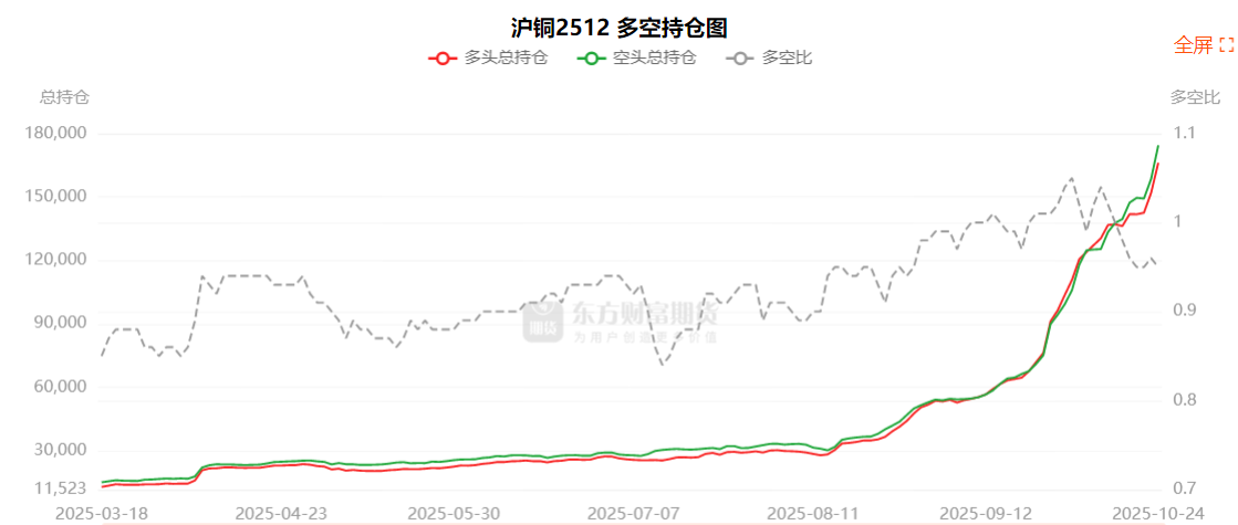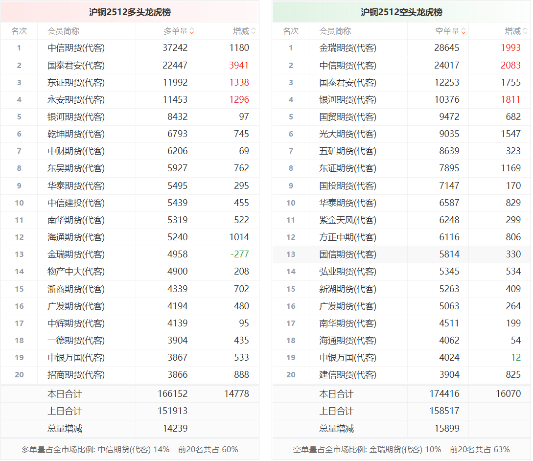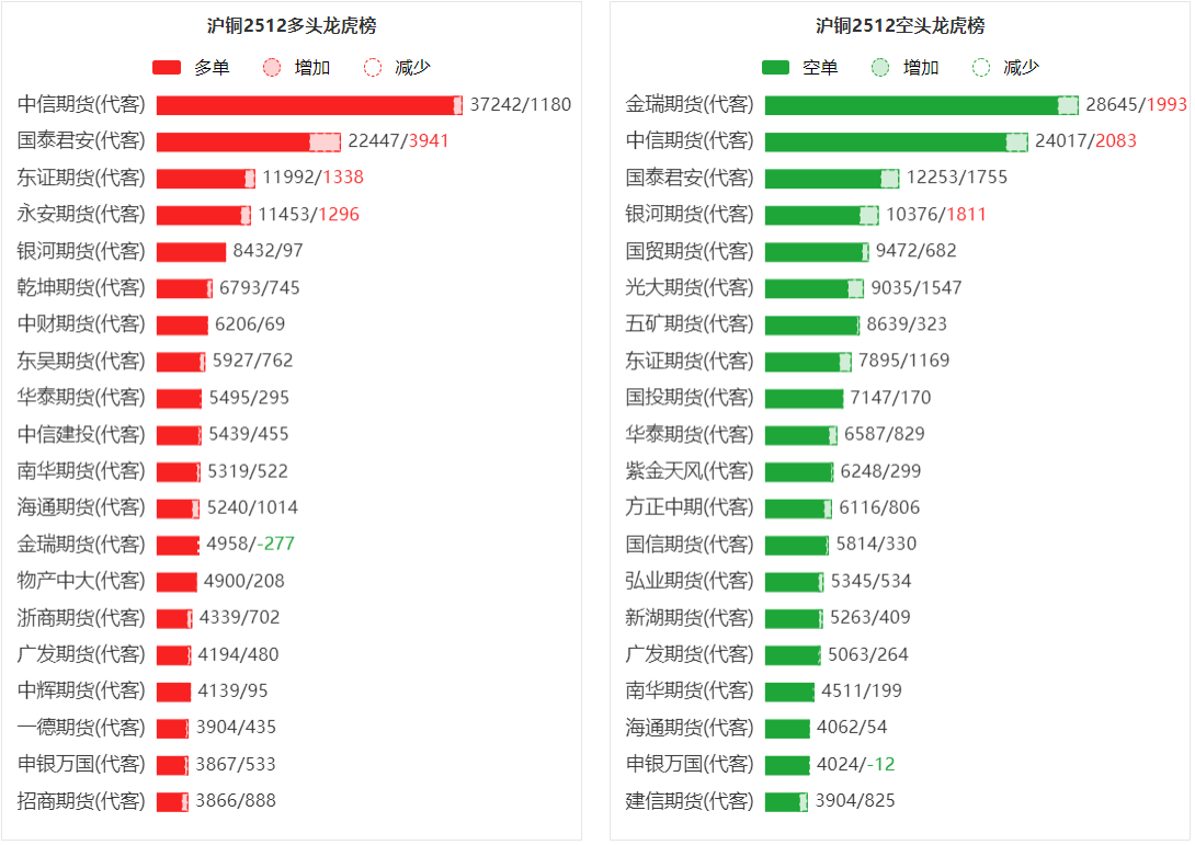 总体而言,沪铜2512合约今日增仓上行,多空持仓排名前20席中,多空双方均呈进场态势,多头进场意愿弱于空头。