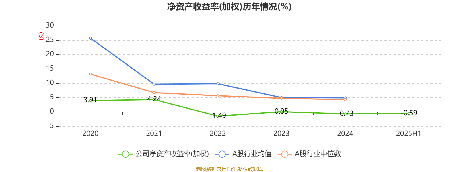 2025年上半年,公司平均净资产收益率为-0.59%,较上年同期下降0.2个百分点。