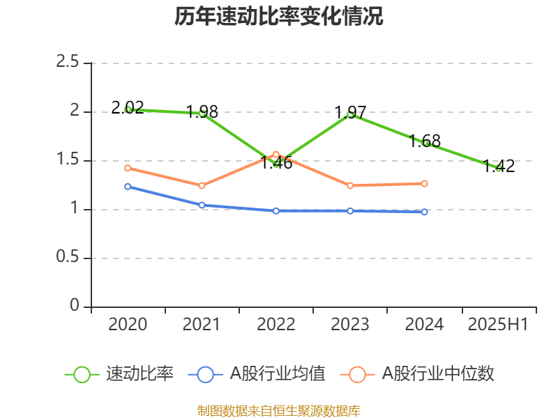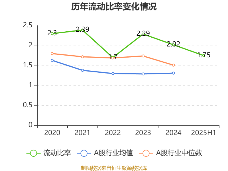 2025年上半年,公司流动比率为1.75,速动比率为1.42。