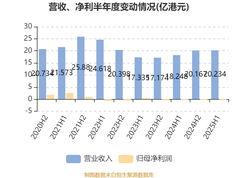 中证智能财讯航天控股(00031)9月26日披露2025年中期报告。报告期内,公司实现营业收入20.23亿港元,同比增长10.89%;归母净利润亏损4233.7万港元,上年同期亏损2857.8万港元;据报告显示,航天控股基本每股收益为-0.0137港元,平均净资产收益率为-0.59%。