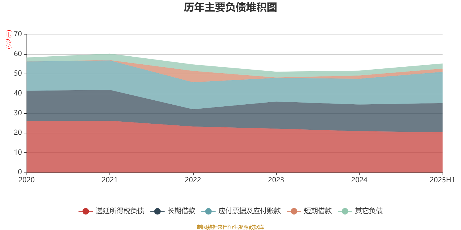 负债重大变化方面,截至2025年上半年,公司应付票据及应付账款较上期末增加21.27%,占公司总资产比重上升1.55个百分点;递延所得税负债较上期末减少2.68%,占公司总资产比重下降0.9个百分点;长期借款较上期末增加9.54%,占公司总资产比重上升0.53个百分点;应交税费较上期末增加488.65%,占公司总资产比重上升0.3个百分点。