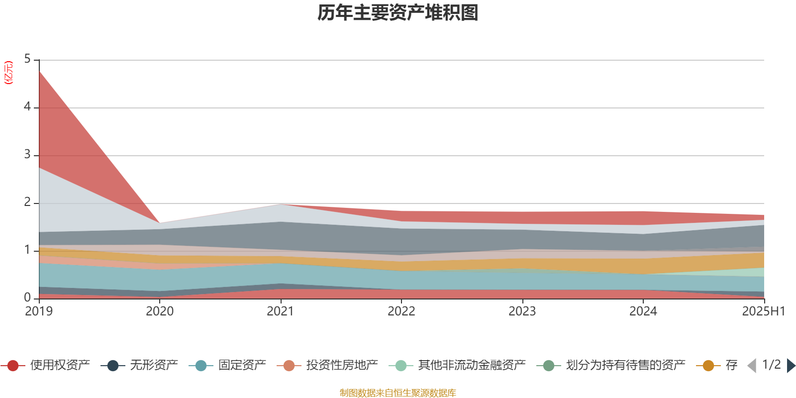 资产重大变化方面,截至2025年上半年,公司交易性金融资产占公司总资产的10.92%,上期末为0;使用权资产较上期末减少80.6%,占公司总资产比重下降7.87个百分点;预付账款较上期末减少84.07%,占公司总资产比重下降7.66个百分点;应收票据及应收账款较上期末增加29.75%,占公司总资产比重上升6.78个百分点。