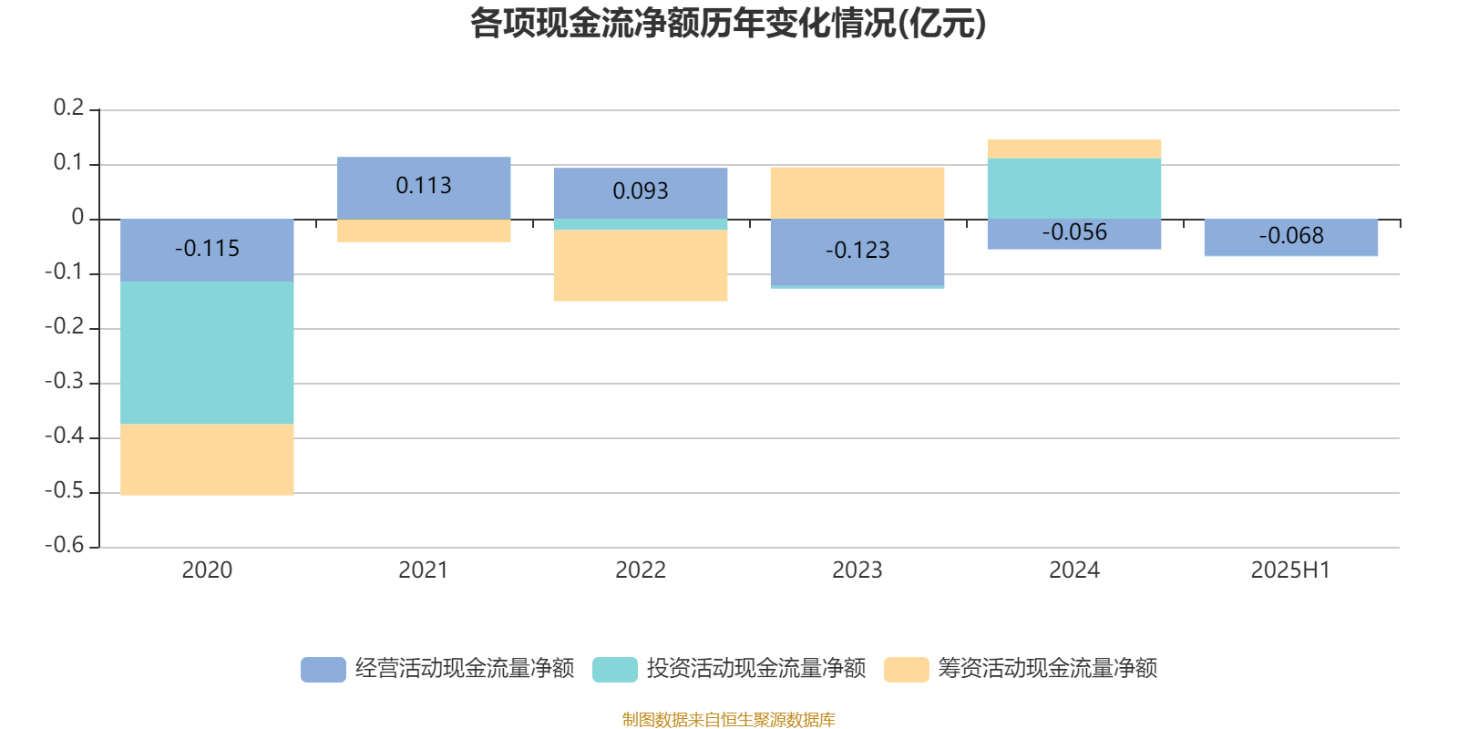 2025年上半年,公司经营活动现金流净额为-684.82万元;投资活动现金流净额-5.04万元。