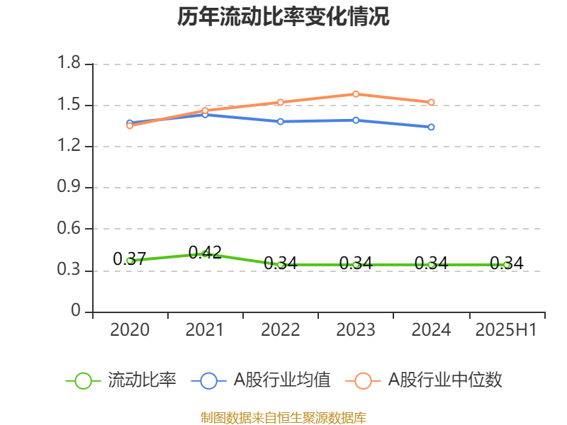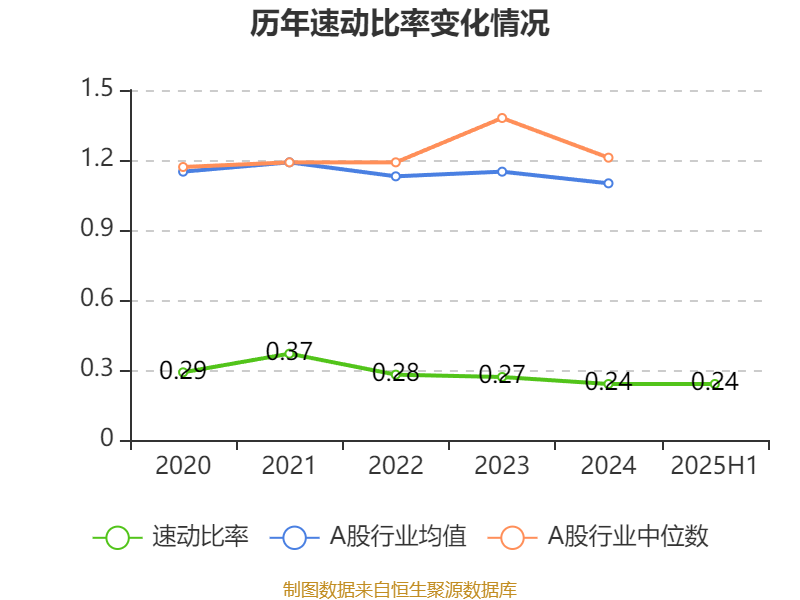 2025年上半年,公司流动比率为0.34,速动比率为0.24。