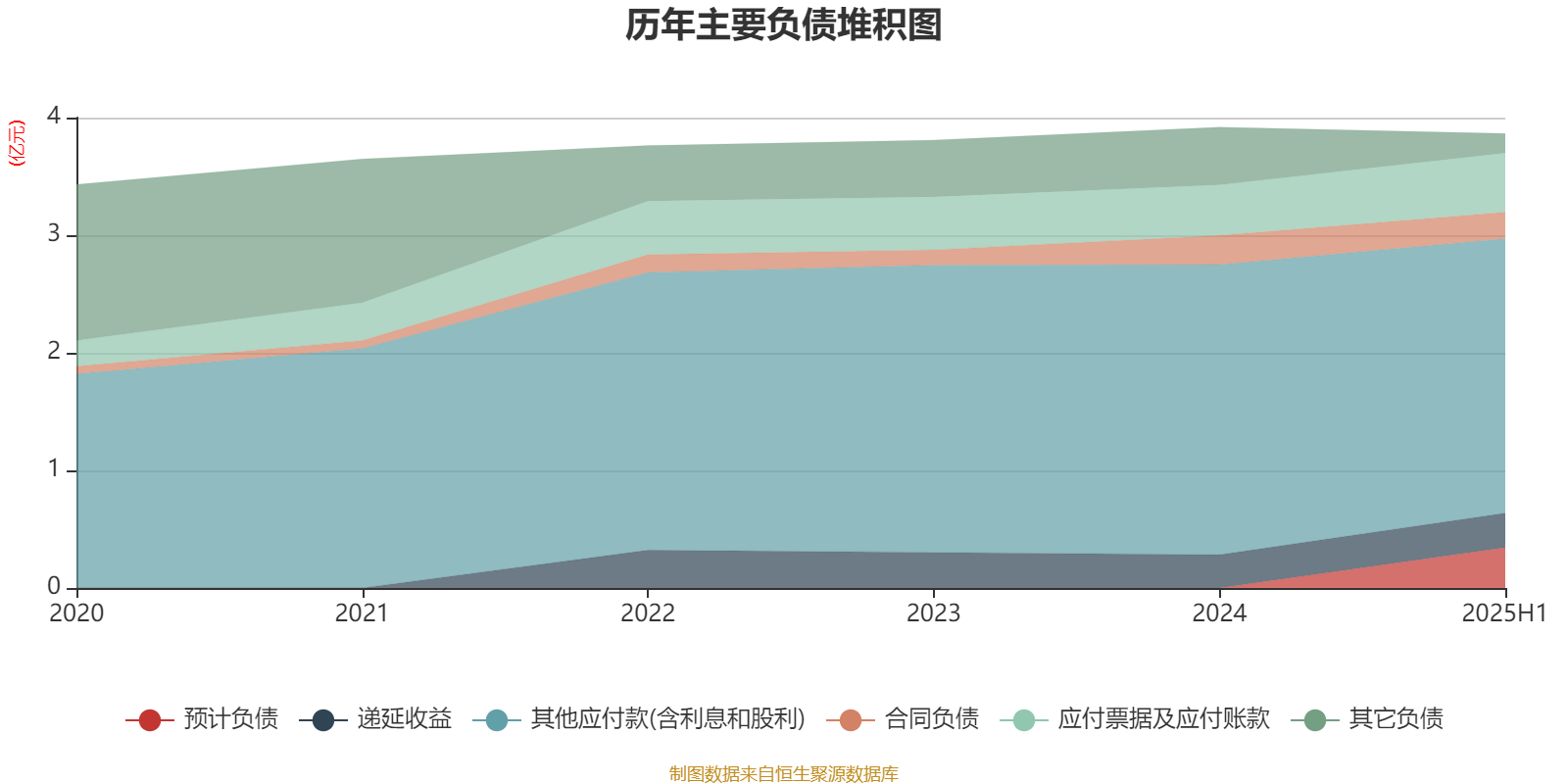 负债重大变化方面,截至2025年上半年,公司预计负债占公司总资产的19.67%,上期末为0;应付票据及应付账款较上期末增加16.72%,占公司总资产比重上升5.17个百分点;一年内到期的非流动负债占公司总资产的4%,上期末为0;应付职工薪酬占公司总资产的1.66%,上期末为0。
