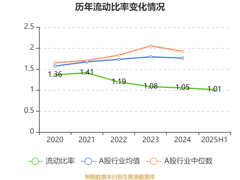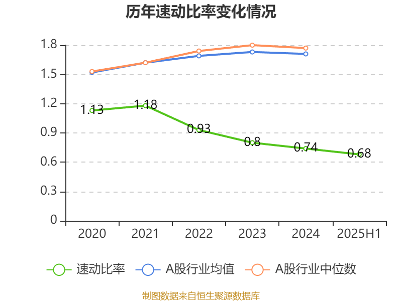 2025年上半年,公司流动比率为1.01,速动比率为0.68。