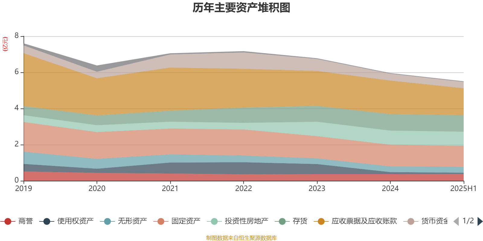 资产重大变化方面,截至2025年上半年,公司应收票据及应收账款较上期末减少19.68%,占公司总资产比重下降4.06个百分点;存货较上期末减少0.03%,占公司总资产比重上升1.27个百分点;投资性房地产较上期末没有变化,占公司总资产比重上升1.08个百分点;固定资产较上期末减少3.3%,占公司总资产比重上升0.94个百分点。
