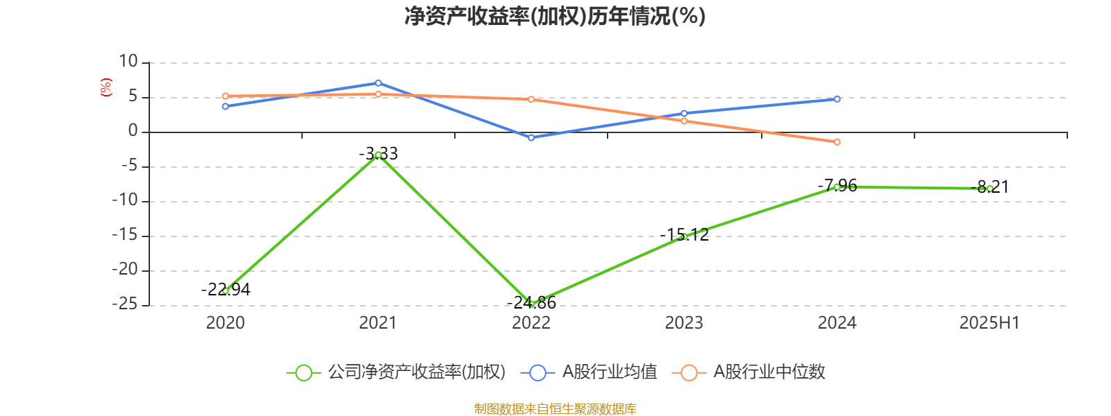 2025年上半年,公司平均净资产收益率为-8.21%,较上年同期下降1.25个百分点。