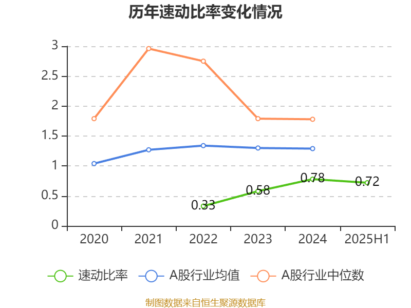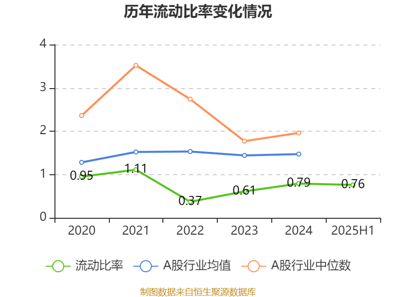 2025年上半年,公司流动比率为0.76,速动比率为0.72。